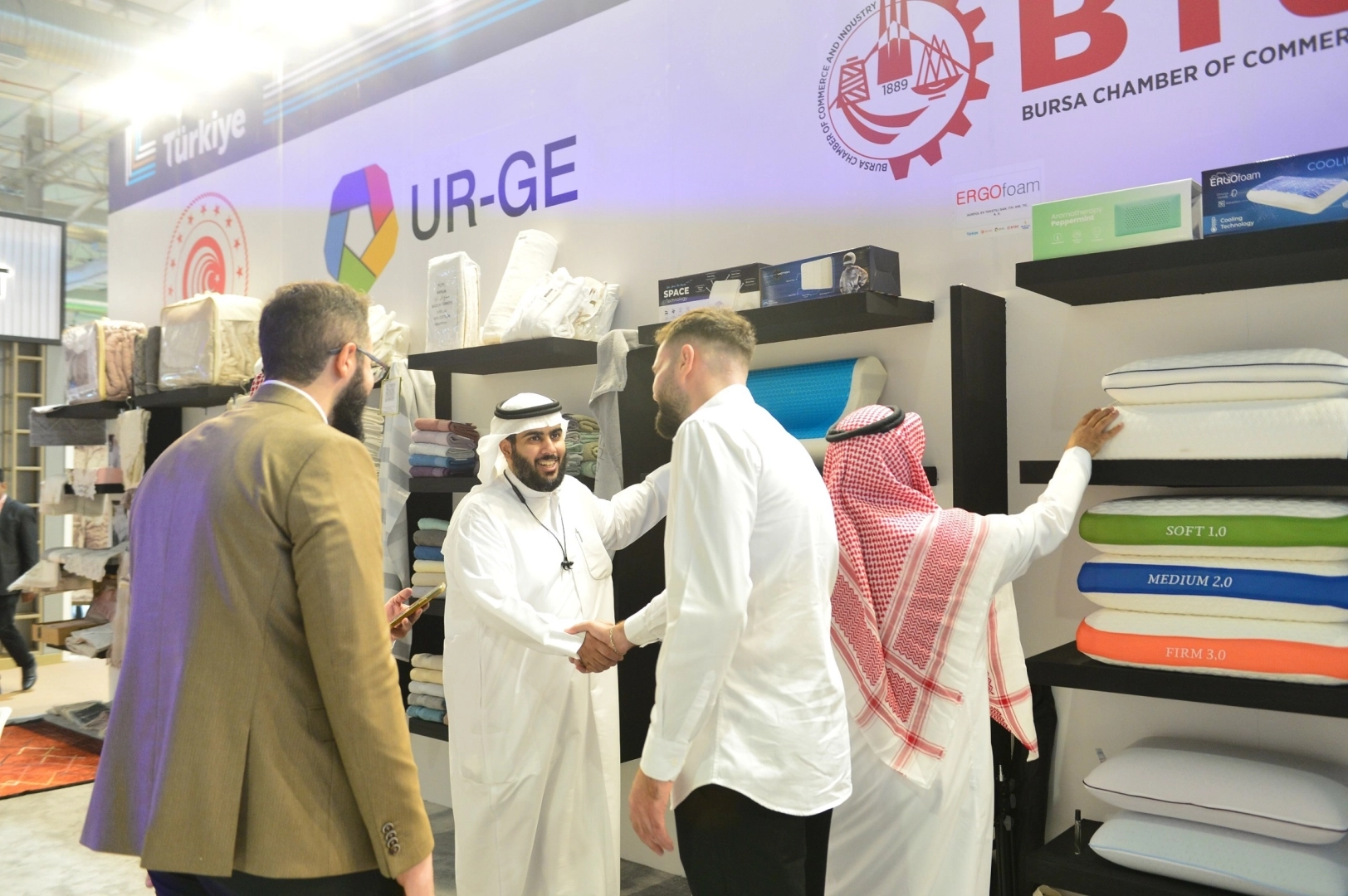 Bursa Ticaret ve Sanayi Odası (BTSO) üyeleri, Ticaret Bakanlığı destekli UR-GE projeleriyle uluslararası pazarlara açılmayı sürdürüyor. BTSO tarafından yürütülen paketli ev tekstili ürünleri ile perdelik ve döşemelik kumaş UR-GE projeleri kapsamında, 30 kişilik BTSO heyeti Körfez bölgesinin önde gelen fuarlarından INDEX Saudi Arabia’ya milli katılım çatısı altında stant açarak katıldı.