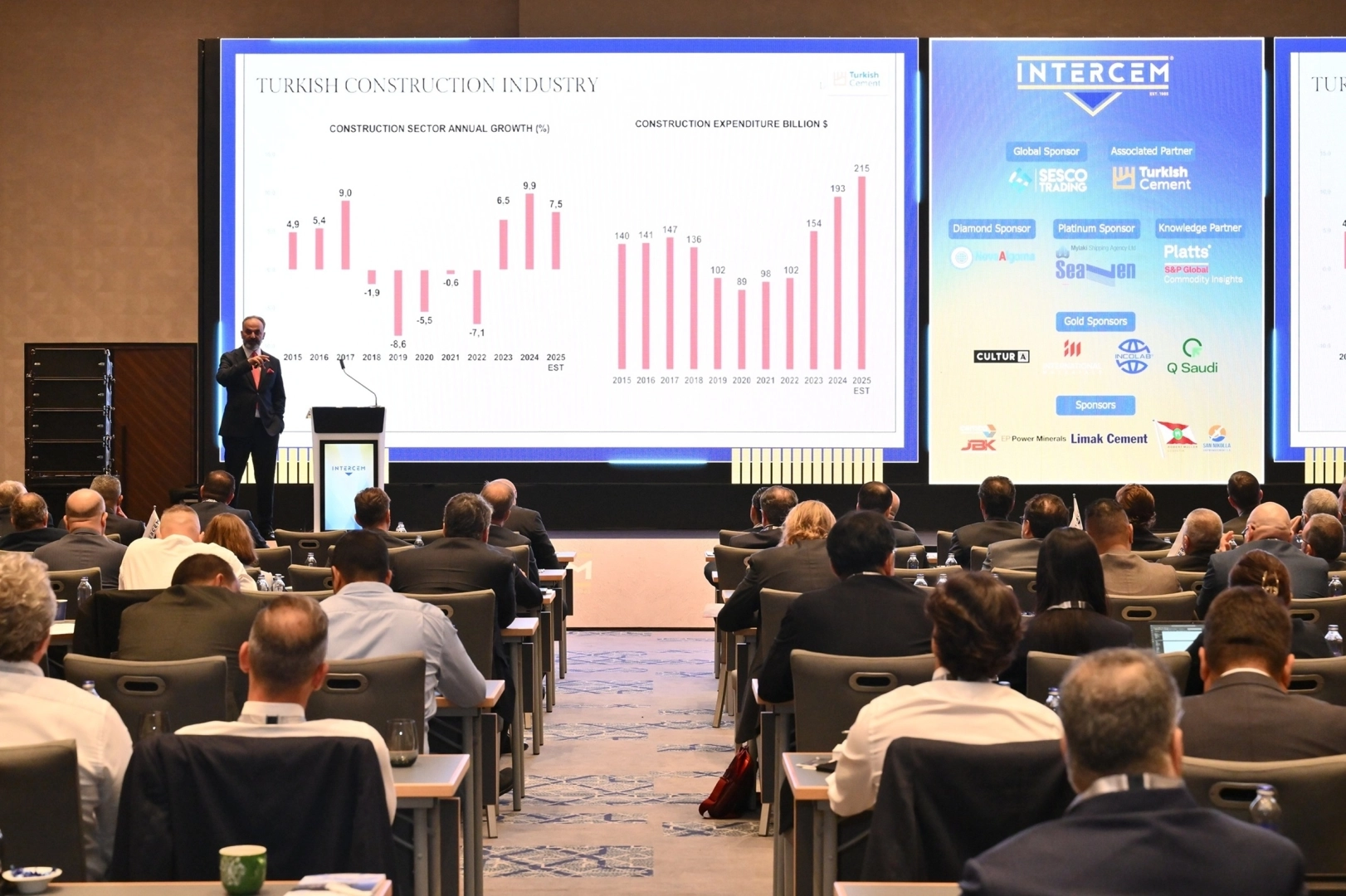 INTERCEM Konferansı’nın açılışında konuşan Çimento, Cam, Seramik ve Toprak Ürünleri İhracatçıları Birliği (ÇCSİB) Yönetim Kurulu Başkan Yardımcısı Abdulhamit Akçay, sektörün yılın ilk 8 ayında ihracatta yakaladığı yüzde 22’lik artışa dikkat çekti.