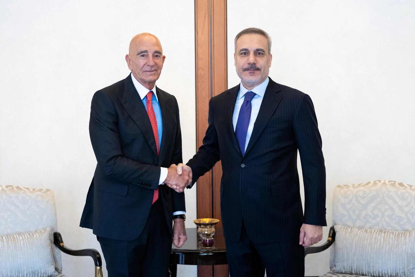 Dışişleri Bakanı Hakan Fidan, ABD'nin Ankara Büyükelçisi ve Suriye Özel Temsilcisi Tom Barrack'ı Ankara’da kabul etti.