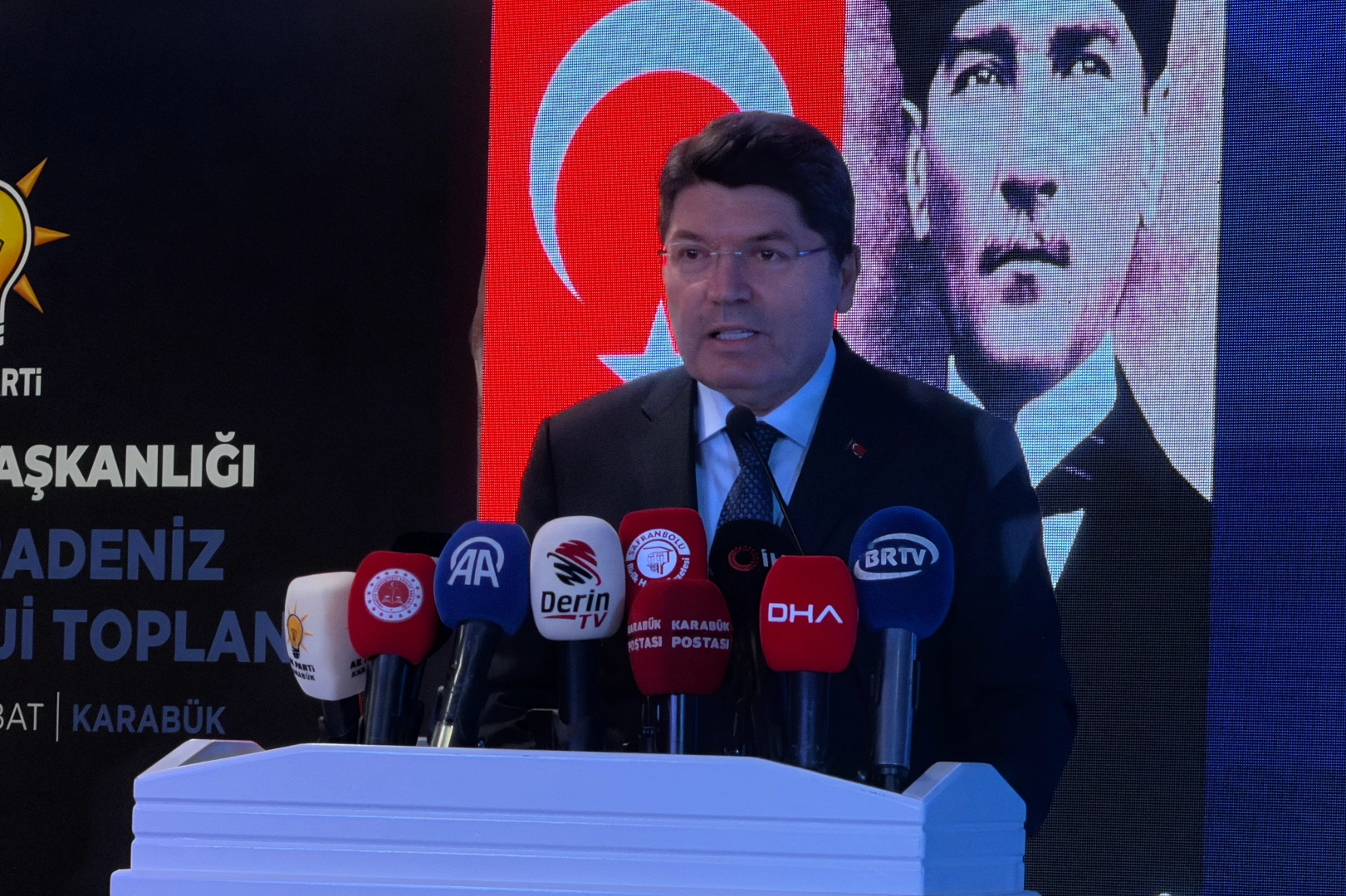Adalet Bakanı Yılmaz Tunç, Bartın’daki programının ardından Karabük’ün Safranbolu ilçesine geçerek AK Parti Teşkilat Başkanlığı tarafından düzenlenen Batı Karadeniz Bölge Strateji Toplantısı'na katıldı. Toplantıda partililere seslenen Bakan Tunç, ana muhalefetin yargıdan rahatsız olduğunu belirterek, “İşte bugünkü yargı sistemi birilerinin arka bahçesi olmaktan çıktığı için vesayetçinin, darbecinin etkisinde değil de tamamen millet iradesini, demokratik hukuk devleti ilkesini esas aldığı için darbeciden de, vesayetçiden de, yolsuzluk yapandan da, hırsızlık yapandan da hesap sorduğu için bugün ana muhalefet bu yargıdan rahatsız. Onun için 'Türkiye'de adalet yok' diyorlar. Onun için yargı mensuplarımızı tehdit ediyorlar. Çünkü rüşvetin, hırsızlığın hesabını vermeleri gerekirken, gelip yargı mensuplarına hakaret ederek bir algı çalışması içerisinde oluyorlar. Milletimiz neyin ne olduğunu görüyor. Herkes yanlışının hesabını millet huzurunda vermesi lazım. Tüyü bitmemiş yetimin hakkını korumak bizim iktidarımızın ve en başta yargımızın görevi. Yargı işini yapacak, tarafsız ve bağımsız bir şekilde çalışmalarını sürdürecek” dedi.