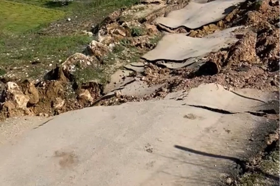 Bursa'nın İnegöl ilçesinde iki kırsal mahalleyi birbirine bağlayan yol, meydana gelen heyelan nedeniyle ulaşıma kapandı.