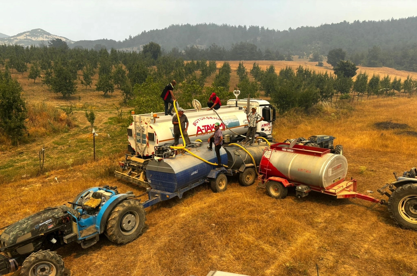 Yangının yerleşim alanlarına ulaşmasını engellemek için gece gündüz çalışan ekipler, zaman zaman 40 derecenin üzerindeki sıcaklıkta ve sarp arazilerde görev yapıyor. A Takımı ekipleri, deneyimli personeli ile arazözler ve iş makineleriyle hem ormanlık alanlara hem de tarım arazileri ve yerleşim yerlerine yakın bölgelere su taşıyarak, yangın söndürme çalışmalarının bir parçası oluyor.