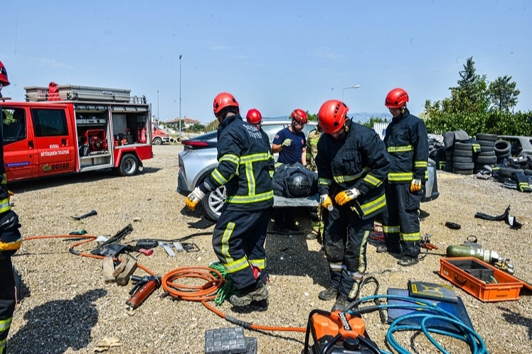 Bursa Büyükşehir Belediyesi bünyesinde göreve yeni başlayan itfaiye erleri, 3 ay boyunca toplam 464 saat sürecek eğitimler kapsamında gerçek olayları aratmayan tatbikatlarla göreve hazırlanıyor.