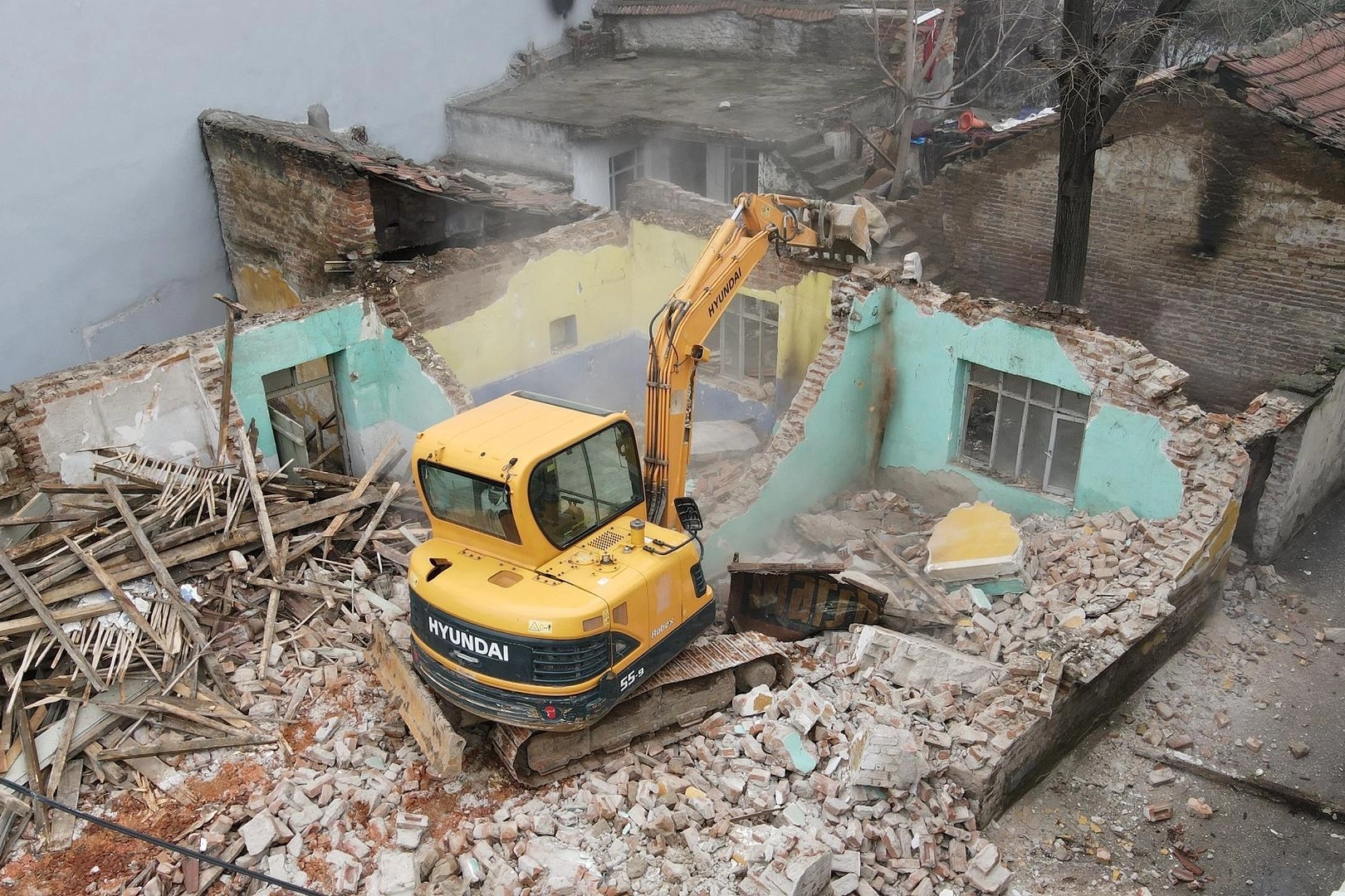 Bursa'da Yıldırım Belediyesi kullanım ömrünü tamamlayan, kent estetiği bakımından olumsuz görüntü oluşturup, çevre ve insan güvenliği açısından tehlike barındıran ve kötü amaçlarla kullanıldığı tespit edilen metruk binaları yıkıyor.