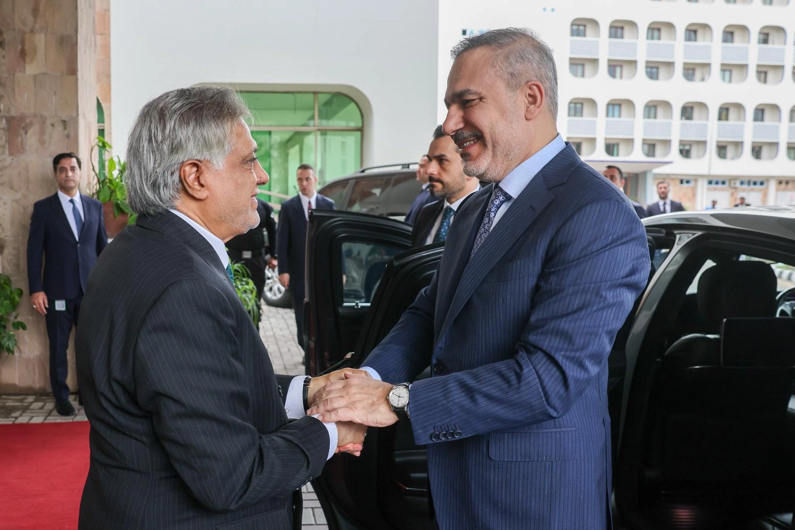 Ziyaretinin ilk aşamasında, Pakistan Dışişleri Bakanı Muhammed İshak Dar ile bir araya geldi.