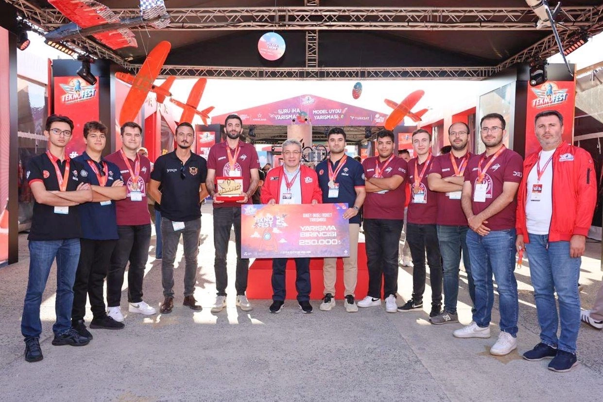 İZMİR (İGFA) - Mühendislik Fakültesi öğrencilerinden oluşan Roket9 Takımı (BORDO145-ROKET9), 324 takımın yarıştığı TEKNOFEST 2025 Dikey İnişli Roket Yarışmasında Türkiye 1’incisi oldu. Aviyonik, mekanik, pnömatik, kontrol ve yazılım sistemlerini entegre ederek geliştirdikleri yenilikçi roket modeliyle yumuşak ve güvenli inişi başarıyla gerçekleştiren ekip; Makine Mühendisliği’nden Ahmet Kurt, Melih Gürses, Özkan Hancıoğlu, Arda Agat, Adem Çakan, Berke Önlü ve Erdem Ardahan, Elektrik-Elektronik Mühendisliği’nden Ahmet Fevzi Pazarlıklı ile Bilgisayar Mühendisliği’nden Furkan Türker Yılmaz’dan oluşuyor.