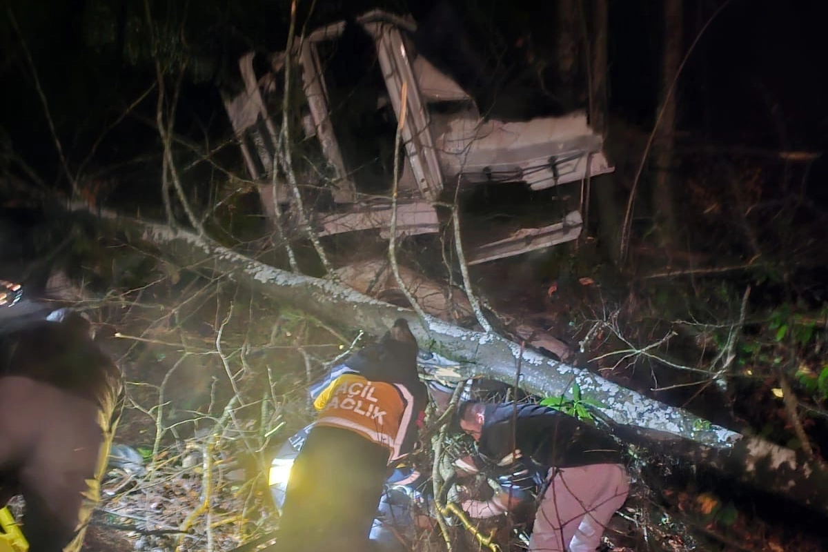 Düzce’nin Yığılca ilçesinde, Pasabükü Orman İşletme Deposundan tomruk yükleyen bir tır, Kavuktaş mevkisinde uçuruma yuvarlandı.