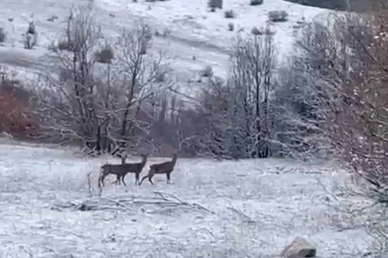 Refahiye ilçesi Baştosun köyünde ailesi ile hayvancılıkla uğraşan ve boş zamanlarında da sanal medyada içerik üreten Berfin Karataş, araziyi gezerken otlayan kızılgeyiklere rastladı. Karataş, kar yağışı altında doğada beslenen üç kızılgeyiği cep telefonu kamerasıyla kayıt altına alındı. Doğada bir süre beslenen kızılgeyikler daha sonra gözden kayboldu.