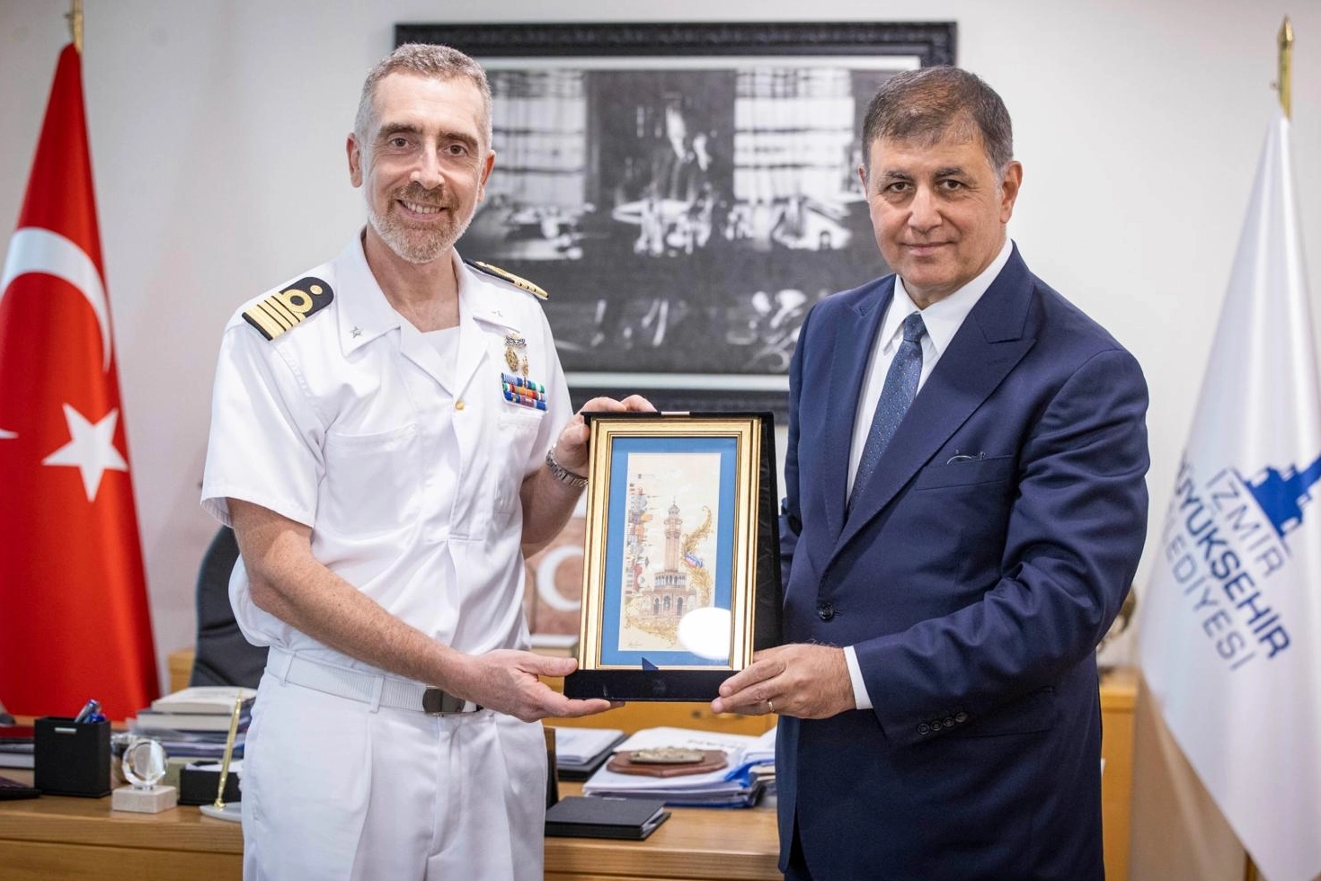 İzmir Büyükşehir Belediye Başkanı Dr. Cemil Tugay, İtalyan Donanması’na ait ITS Trieste Gemi Komutanı Albay Francesco Marzi ve beraberindeki heyeti ağırladı.