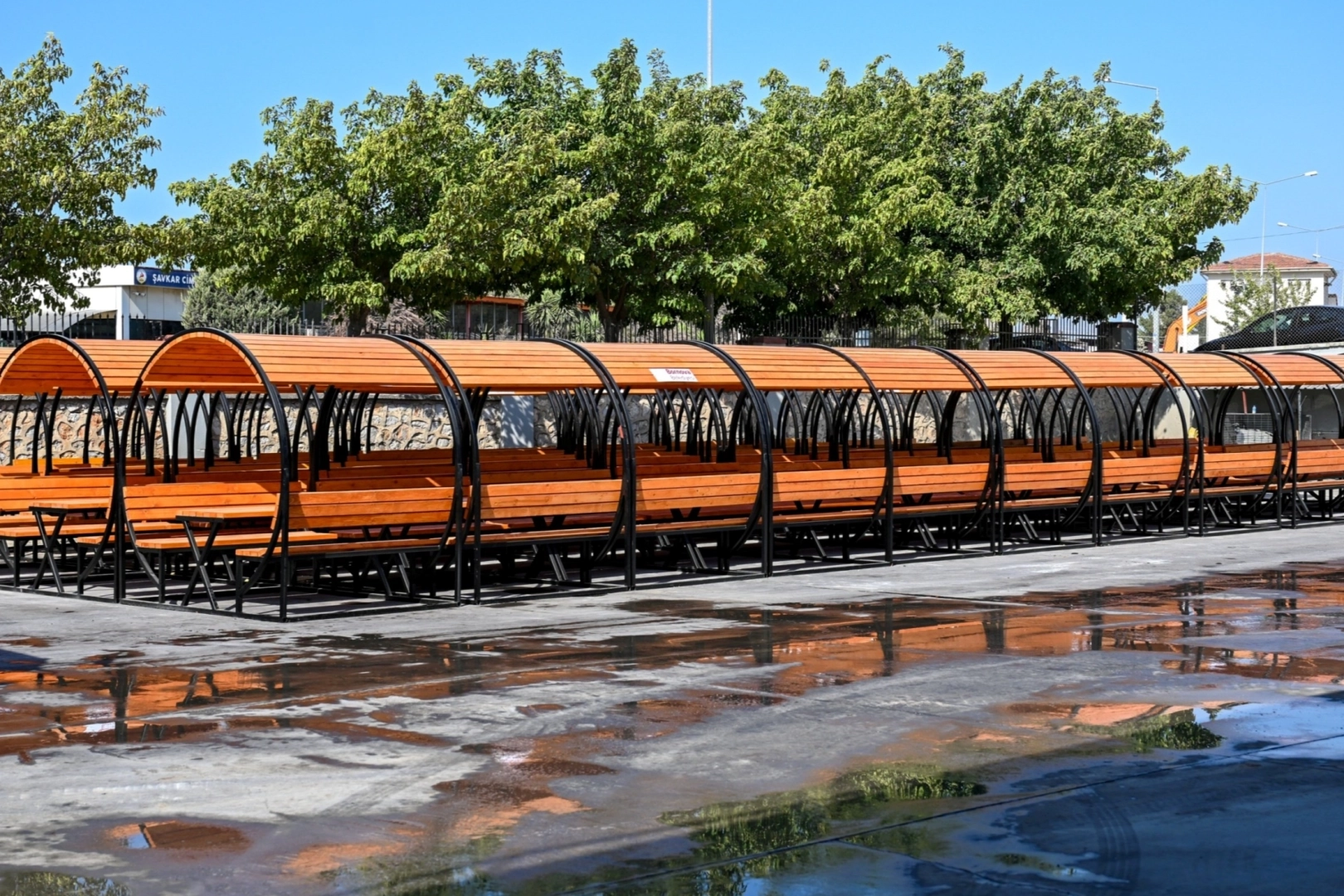 İzmir Bornova Belediyesi, ilçedeki parkları vatandaşların güneşten ve yağmurdan korunarak konforlu vakit geçirebileceği üzeri kapalı banklarla donatıyor.