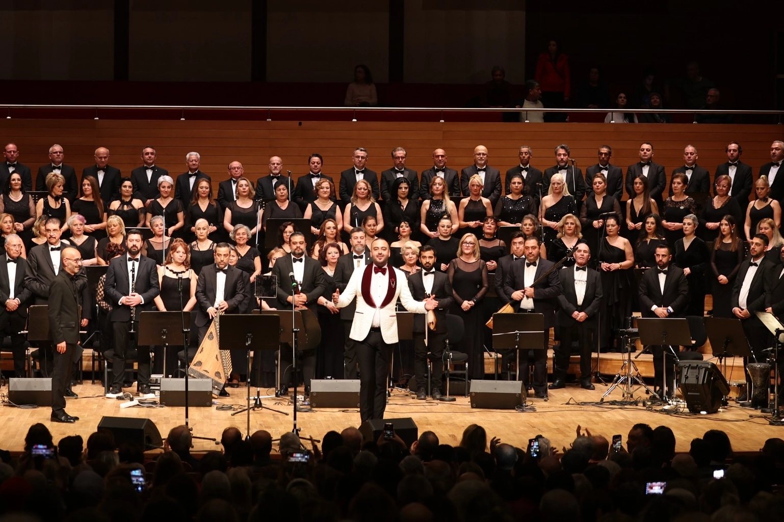 Ahmed Adnan Saygun Sanat Merkezi'nde gerçekleştirilen konserde, şef Hüseyin Tolu yönetimindeki 120 kişilik dev koro, Türk müziğinin hüzzam, nihavend, kürdilihicazkar makamlarının seçkin eserlerini seslendirdi.