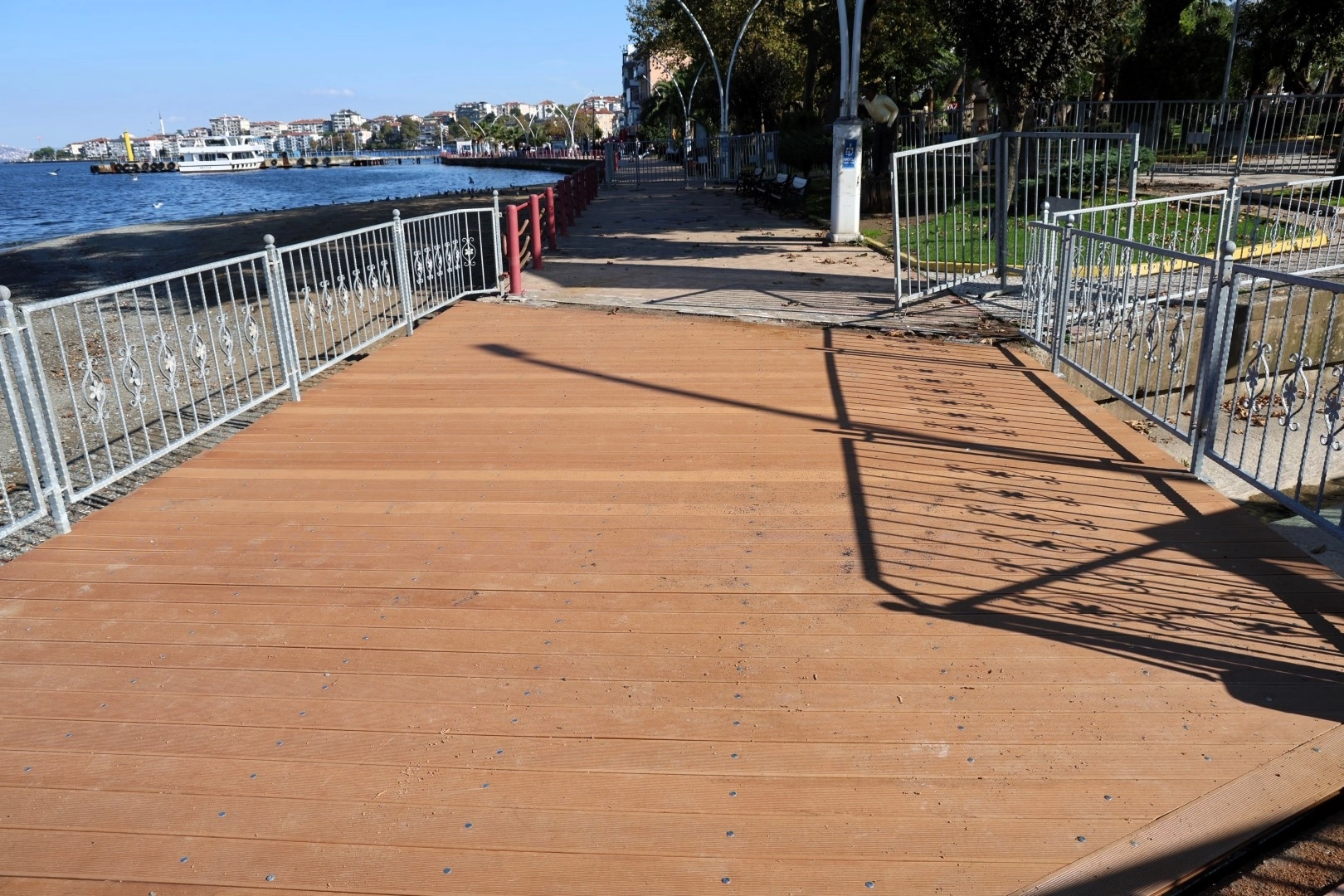 Köprü zemininde, deniz suyuna ve yüzey aşınmasına karşı yüksek dayanım gösteren kompozit deck malzemesi tercih edildi. Bu sayede köprü, uzun ömürlü ve bakım gereksinimi düşük bir yapıya kavuşturuldu. Yapının genel montajı tamamlanırken, korkuluk ve deck montajı da başarıyla gerçekleştirildi. Yeni yaya geçiş köprüsü, Değirmendere sahilinde hem yaya güvenliğini artıracak hem de sahil estetiğine modern bir görünüm kazandıracak.