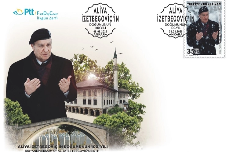 ANKARA (İGFA) - PTT AŞ, 8 Ağustos 2025 tarihinde "Aliya İZETBEGOVİÇ'in Doğumunun 100.Yılı" konulu 35 TL (36 x 52 mm boyutunda) bedelli anma pulu ile söz konusu pula ait 70 TL bedelli ilkgün zarfını abone sayısı kadar PTT iş yerlerinde ve PTT AŞ’ye ait www.filateli.gov.tr web adresinde satışa sundu.