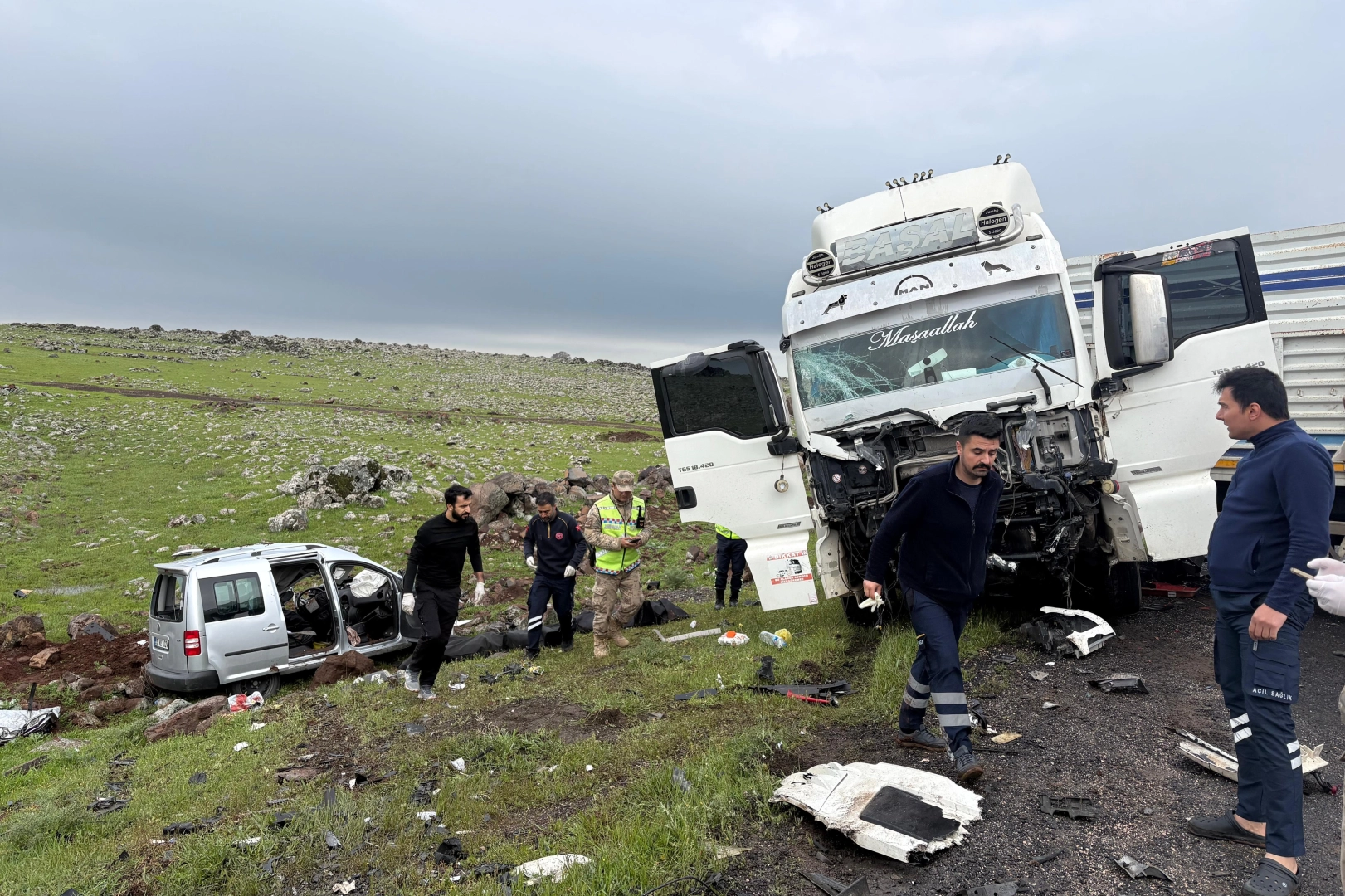 Kaza, sabah saatlerinde Siverek-Adıyaman kara yolunun 25’inci kilometresinde meydana geldi. Hüseyin Çelik'in (29) kullandığı 63 EU 063 plakalı TIR ile Halid Aydın'ın kullandığı 65 NZ 024 plakalı hafif ticari araç çarpıştı. Çevredekilerin ihbarı üzerine kaza yerine sağlık, itfaiye ve jandarma ekipleri sevk edildi. Hafif ticari araçta sıkışan yaralılar, itfaiye ekiplerinin yaklaşık yarım saat süren çalışmasıyla bulundukları yerden çıkarıldı. Sağlık ekiplerinin kontrolünde Aydın ve yanındaki Bekir Çıplak'ın yaşamını yitirdiği belirlendi. Kazada yaralanan TIR şoförü Çelik ise ambulansla Siverek Devlet Hastanesi’ne kaldırıldı.