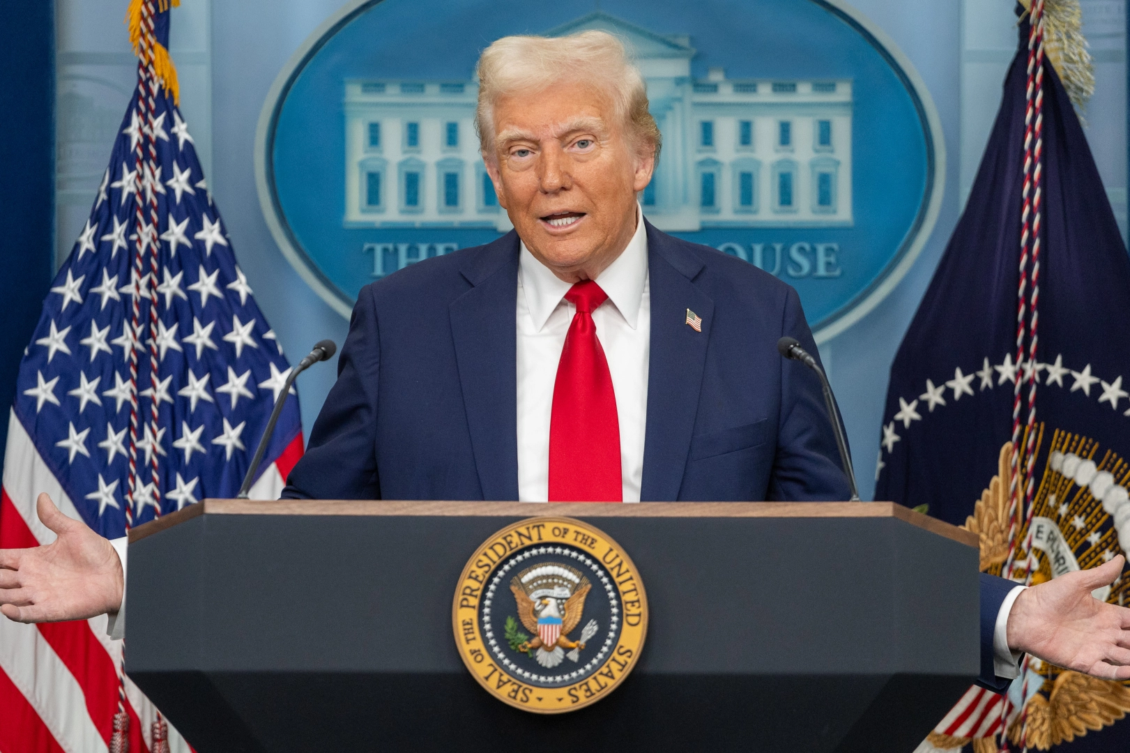 İran yönetiminin üst düzey isimlerinin büyük bir kısmını etkisiz hale getirdiklerini öne süren Trump, ülkede fiili olarak bir rejim değişikliği yaşandığını ve şu an liderin kim olduğunun dahi belirsiz olduğunu kaydetti. Konuşması sırasında Hürmüz Boğazı yerine kendi adını kullanan ve hemen ardından sözlerini düzelten Trump, basının bunu bir hata olarak yansıtacağını ancak kendisinin hata yapmadığını belirterek durumu espriyle geçiştirdi.