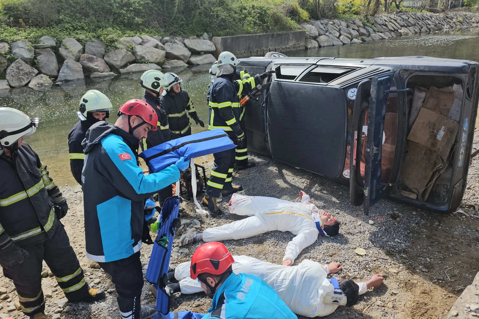 Tatbikatta yaralıların makyajı gerçeğini aratmazken faaliyette 23 kurum, kuruluş, STK ve AFAD gönüllülerinden oluşan 180 personel görev aldı. Tatbikatta 50 arama kurtarma ve sağlık aracı da kullanıldı. Tatbikat öncesi konuşma yapan AFAD İl Müdürü Ali Kartal, “İlimiz sel su baskını ve bunlara bağlı heyelan afetlerine sık sık maruz kalmaktadır. Bugünkü tatbikatımızı da en çok karşılaştığımız olay olan, sel, su baskını afetleri üzerinden gerçekleştiriyoruz. Bugün sahada 23 kurum, kuruluş, STK ve gönüllümüzle bir aradayız. Her bir kurum, özellikle operasyon kurumları sahada zaten günlük rutin çalışmaları içinde yapıyorlar, belli bir tecrübeleri var ama birkaç kurum bir araya geldiğinde bunu yönetmek ve takip etmek daha zor oluyor. Bundan dolayı bunu böyle tatbikatlarla, hazırlıklarla anca yapabiliyoruz. Afetleri 3 aşamaya ayırdığımızda afet öncesi hazırlık, afet sırası müdahale, afet sonrası iyileştirme çalışmaları bir bütün halinde yürütülüyor. Bugün bu müdahale, aslında bir müdahaleden öte afet öncesi hazırlık ve risk azaltma kapsamında çok güzel bir hazırlık olacak” dedi.