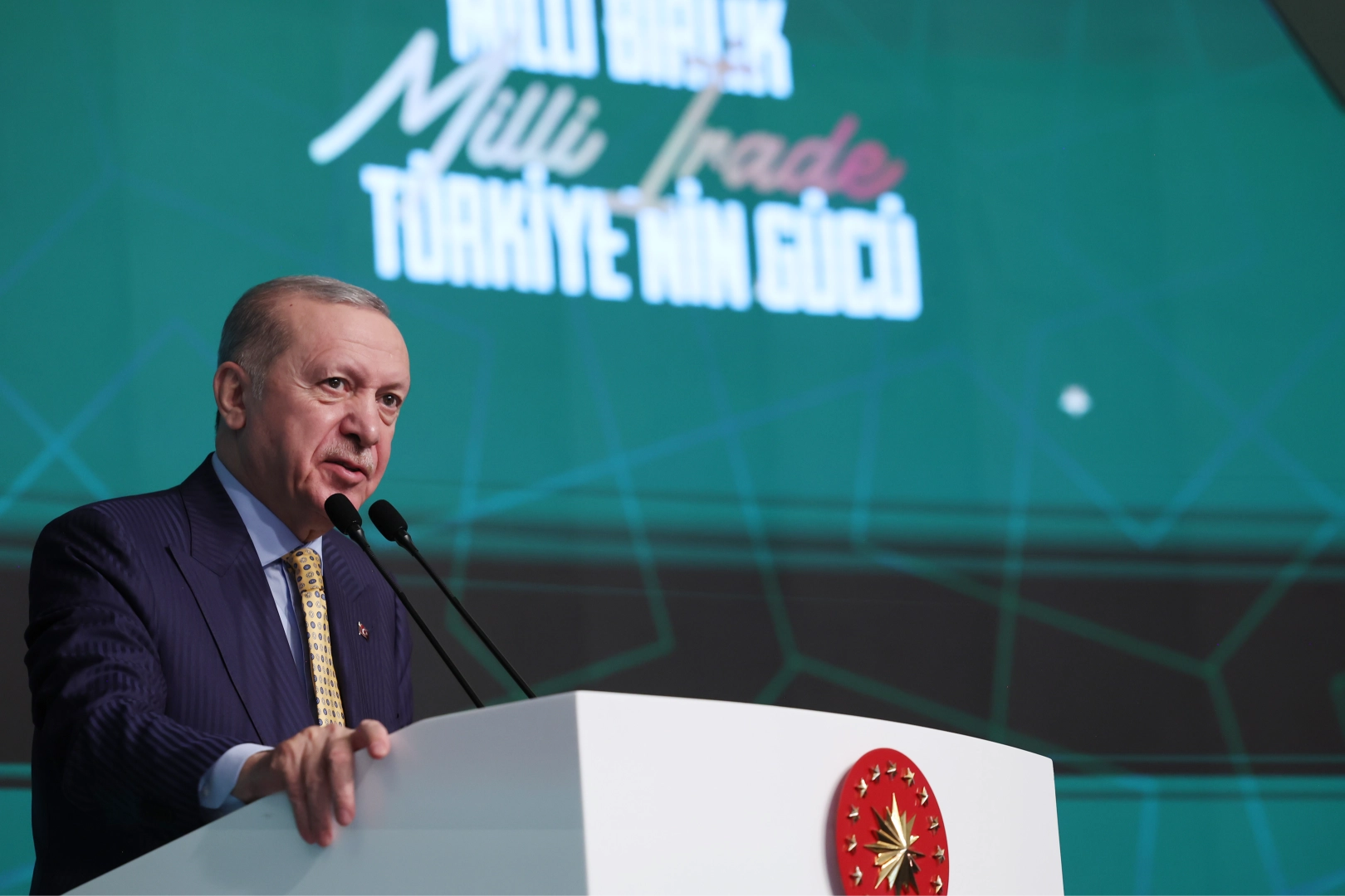 Erdoğan, “Çok değerli kardeşlerim; vicdan tutulmasına uğramış işte böyle bir dünyada Türkiye olarak, sizlerin de destekleriyle insanlığın vicdanı olmanın mücadelesini hep birlikte veriyoruz. Bugün Türkiye'nin Anadolu merkezli yaktığı çoban ateşi, gönül ve kültür coğrafyamızın her yanında milyonlarca mazlumun yüreğini ısıtıyor. Filistin'den Arakan'a, Afrika'dan Latin Amerika'ya; uluslararası toplumun sırtını döndüğü yerlerde sizlerle varız, resmi kurumlarımızla varız, sivil toplum kuruluşlarımızla varız. Bir garibin elinden tutmak, bir mazlumun gözyaşını silmek, bir yetimin, öksüzün başını okşamak için hep beraber seferber olmuş durumdayız. Gazze'deki kardeşlerimiz başta olmak üzere dünyadaki tüm mazlumlarla dayanışma halindeyiz. Milli İrade Platformu'nun öncülüğünde 1 Ocak'ta Galata Köprüsü'nde bir araya gelen yüz binlerin haykırdığı gibi: Sinmiyoruz, susmuyoruz, Filistin'i unutmuyoruz. Şunu da bugün açık açık ilan etmek istiyorum: Bu can bu tende olduğu müddetçe mazlumların yanında duracak, zulme rıza göstermeyeceğiz, baskılar karşısında sinmeyecek ve susmayacağız. Bu vesileyle, şimdiye kadar milyonların katılımıyla düzenlediği dört Gazze mitingiyle hakkın ve haklının tarafında duran Milli İrade Platformu'nu tebrik ediyor, Cenab-ı Allah sizlerden razı olsun diyorum. Sadece mazlum ve mustazafların değil, yaklaşık 13 yıldır milli iradenin ve milletin yanında saf tuttuğunuz için sizlere dua ediyor, teşekkür ediyorumö dedi.