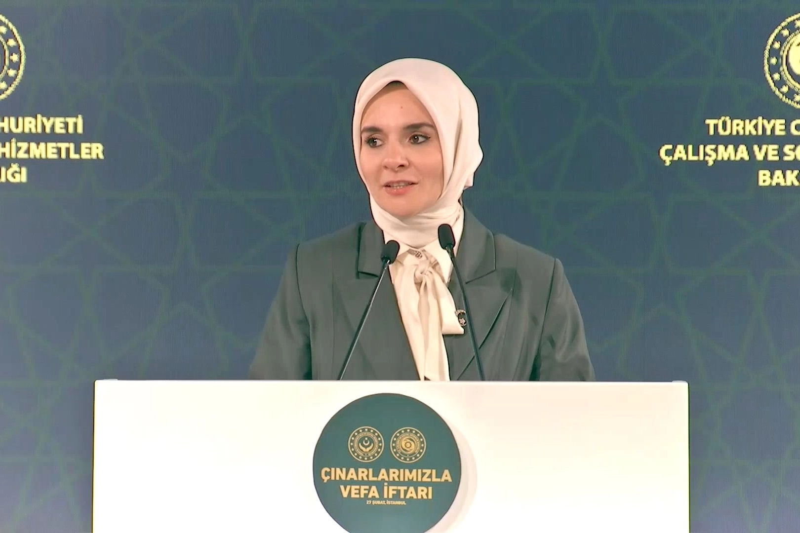 Aile ve Sosyal Hizmetler Bakanı Mahinur Özdemir Göktaş, Darülaceze Sosyal Yaşam Şehri'nde düzenlenen 'Çınarlarımızla Vefa İftarı' programında konuştu. Asırlık bir merhamet çınarının gölgesinde, ramazanın rahmet ve bereketinde Darülaceze sakinleriyle aynı sofrada buluşmanın mutluluğunu yaşadığını ifade eden Göktaş, “Bu mübarek günlerin milletimize, İslam alemine ve tüm insanlığa hayırlar getirmesini temenni ediyorum. Bizi şefkatiyle saran, duasıyla yolumuzu aydınlatan değerli büyüklerimizin ellerinden öpüyorum diye konuştu.