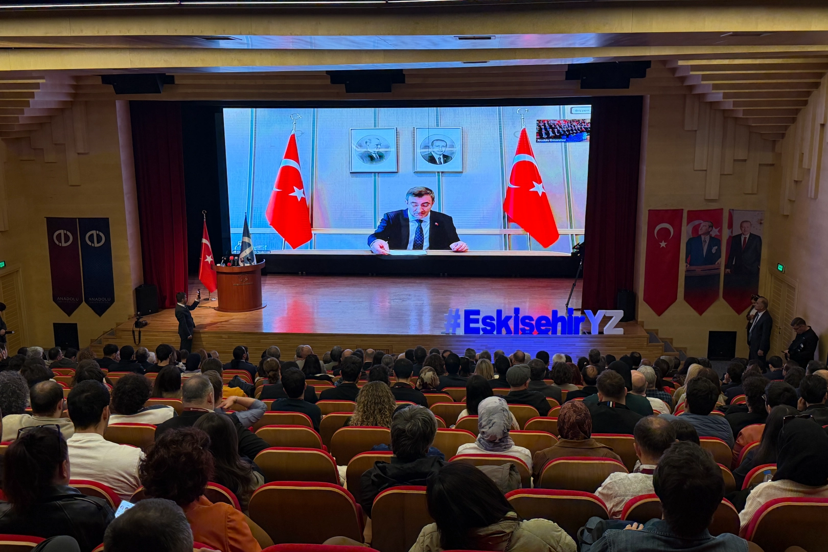 Anadolu Üniversitesi ev sahipliğinde Osmangazi Üniversitesi ve Eskişehir Teknik Üniversitesi iş birliğiyle ‘Uluslararası Yapay Zeka Zirvesi’ düzenlendi. Öğrenci Merkezi Yunus Emre Salonu’ndaki zirveye TBMM Yapay Zeka Araştırma Komisyonu Başkanı ve AK Parti Eskişehir Milletvekili Fatih Dönmez, Eskişehir Valisi Erdinç Yılmaz, AK Parti Eskişehir Milletvekili Nebi Hatipoğlu, İl Jandarma Komutanı Tuğgeneral Erhan Demir, İl Emniyet Müdürü Tolga Yılmaz, Eskişehir Cumhuriyet Başsavcısı Üzeyir Karakülah, Anadolu Üniversitesi Rektörü Prof. Dr. Yusuf Adıgüzel, Eskişehir Teknik Üniversitesi Rektörü Prof. Dr. Adnan Özcan, Eskişehir Osmangazi Üniversitesi Rektörü Prof. Dr. Kamil Çolak katıldı.