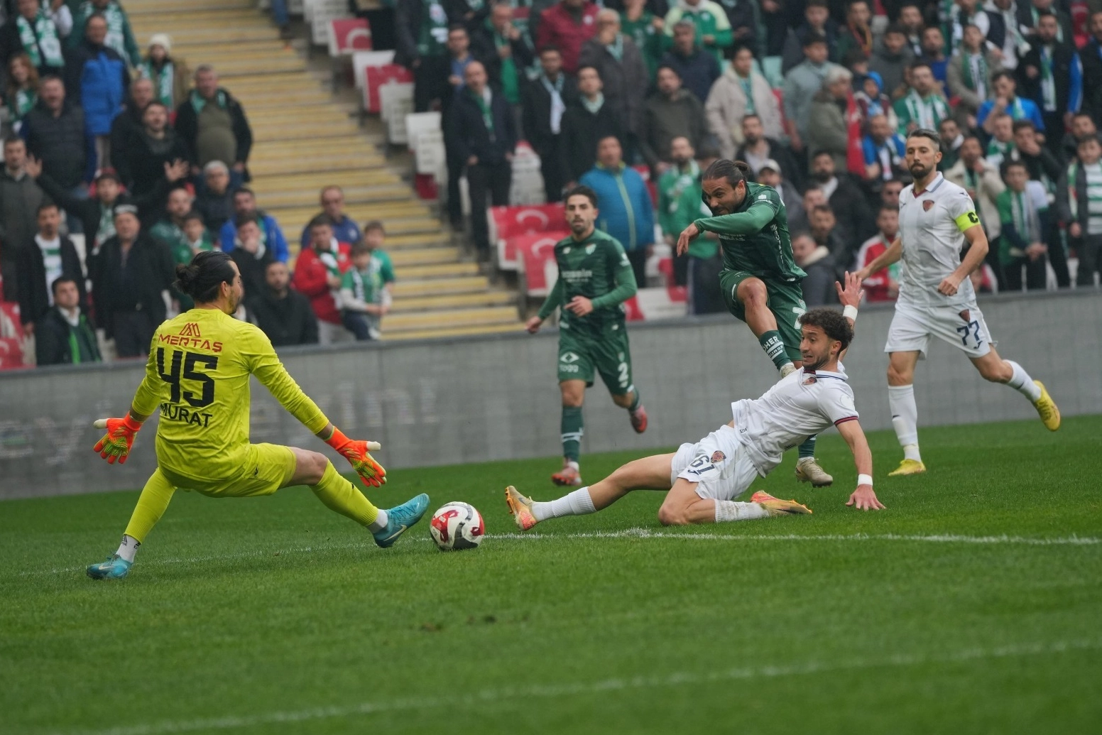 2’nci Lig Kırmızı Grup’un 20’nci haftasında Bursaspor, Atatürk Spor Kompleksi Matlı Stadyumu’nda konuk ettiği Yeni Mersin İdmanyurdu’nu 3-0 mağlup ederek sahadan net bir galibiyetle ayrıldı. Karşılaşmada yeşil-beyazlılara galibiyeti getiren golleri 38’inci dakikada Soner Aydoğdu, 72 ve 90+1’inci dakikalarda Barış Gök kaydetti. Mücadelede tek sarı kart, 8’inci dakikada Yeni Mersin İdmanyurdu’ndan Aslan Gök’e çıktı.