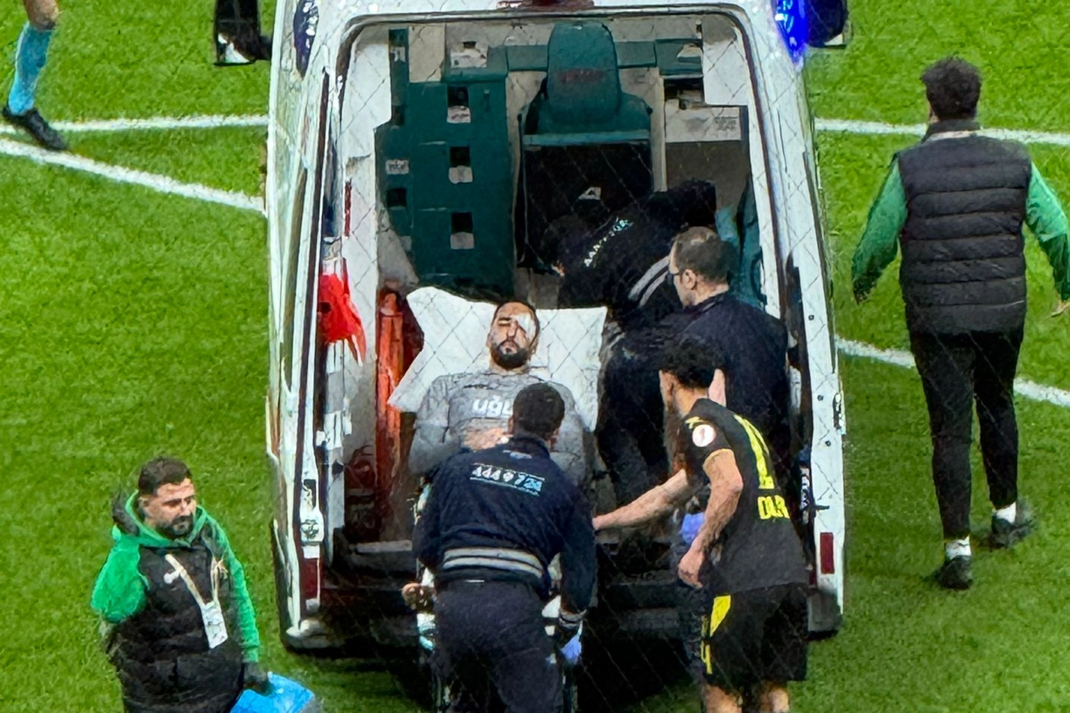İstanbulspor’un kalecisi İsa Doğan ile Galatasaraylı futbolcu Ahmed Kutucu, ikinci yarının hemen başında çarpışmanın ardından sahada yere yığıldı. Sağlık ekiplerinin uzun süren müdahalesi sonrası sedyeyle ambulansa alınan Doğan, tedbir amaçlı hastaneye kaldırıldı. Aynı pozisyonda geçici bilinç kaybı yaşayan Ahmed Kutucu ise oyuna devam edemedi. Teknik heyet, Kutucu’nun yerine İsmail Jakobs’u sahaya sürdü. Karşılaşma kısa süreli duraklamanın ardından yeniden başladı. Galatasaray sanal medya hesabından “Geçmiş olsun İsa Doğan! En kısa sürede iyi haberlerini almayı temenni ediyoruz” paylaşımı yaptı