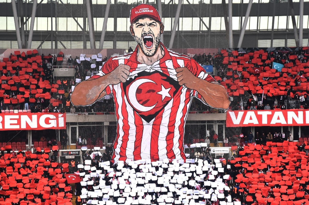 Sivasspor taraftarları, Türk bayraklı koreografi ile dikkat çekti. Adeta bir görsel şölen haline gelen stadyum, görenleri büyüledi.