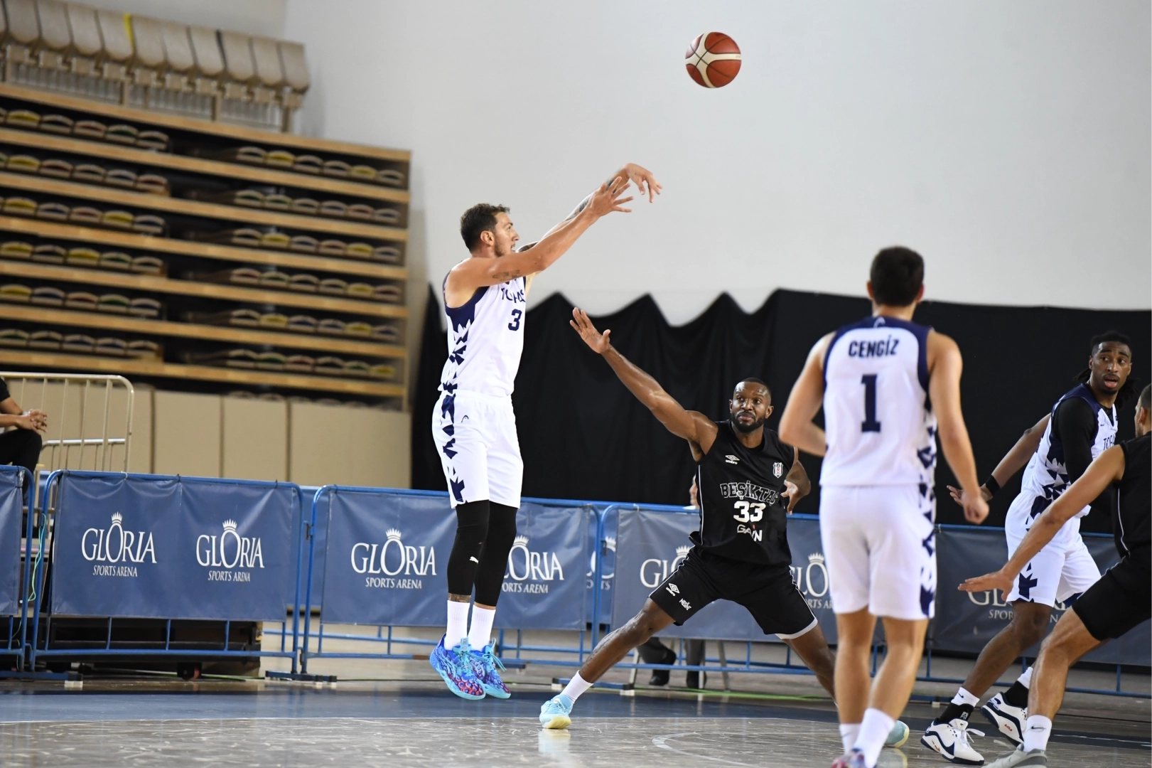 BURSA (İGFA) - Yeni sezon hazırlıklarına Antalya kampıyla devam eden TOFAŞ, Gloria Cup 2025’teki ilk maçında Beşiktaş GAİN ile karşı karşıya geldi. Gloria Sports Arena’da oynanan sezonun üçüncü hazırlık maçına Alex Perez, Joe Thomasson, Tolga Geçim, Yiğitcan Saybir, Isaiah Whaley beşiyle başlayan Bursa ekibi, ilk basketlerini Tolga Geçim ve Alex Perez ile buldu. Yiğitcan Saybir ve Joe Thomasson’un sayıları sonrası rakip basketlerine Özgür Cengiz, Maxwell Lewis ve Hugo Besson ile karşılık veren Mavi Yeşilliler, ilk çeyreği 27-28 geride kapattı.