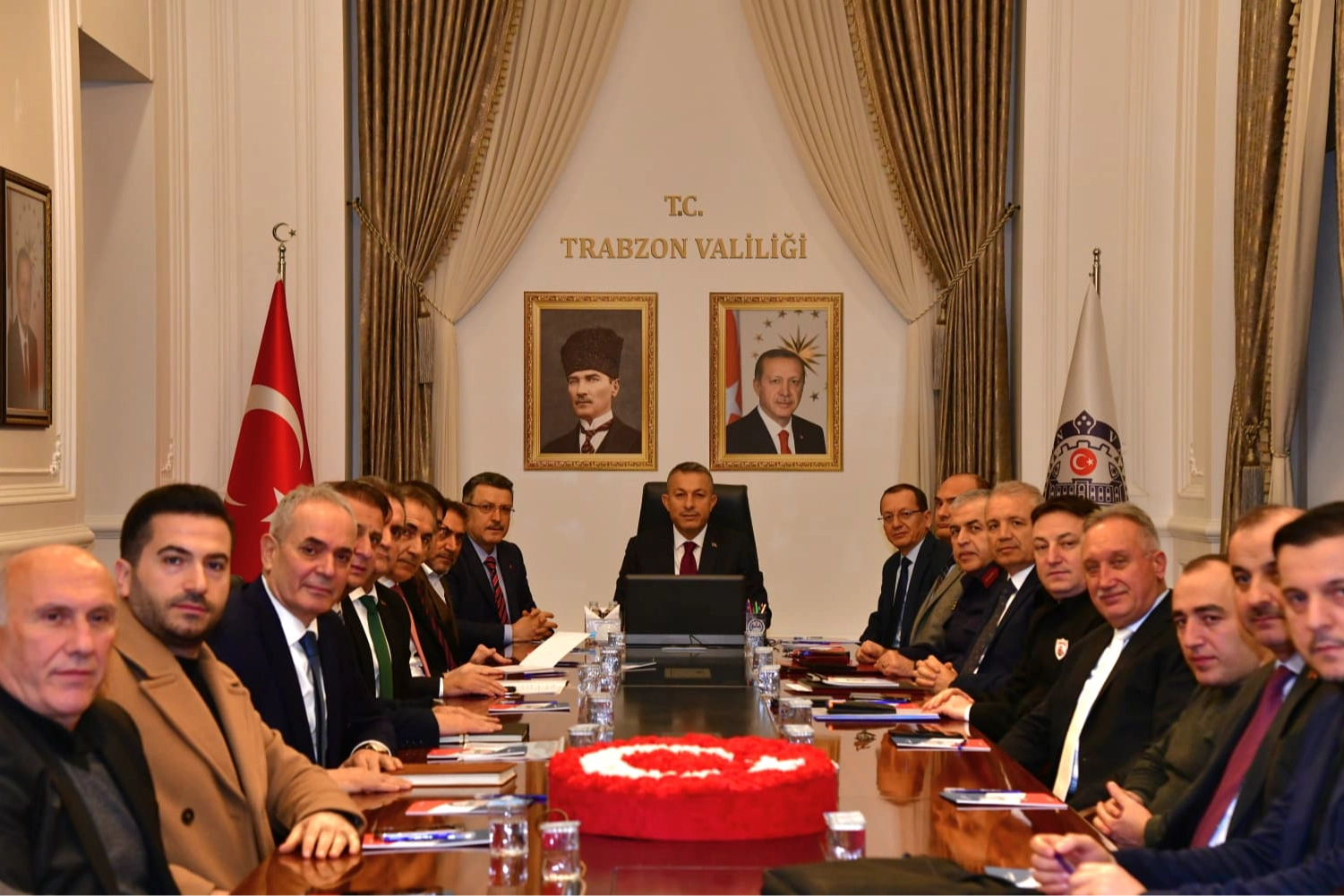 Trabzon İl Spor Güvenlik Kurulu Toplantısı, Vali Tahir Şahin başkanlığında kurul üyelerinin de katılımıyla Valilik Toplantı Salonu'nda gerçekleştirildi. Türkiye Spor Yazarları Derneği (TSYD) Trabzon Şubesi'nden yapılan açıklamaya göre toplantıda, ev sahibi kulübün talebi üzerine karşılaşmaya sarı-lacivertli taraftarların stada alınmaması uygun görüldü.Gerekli güvenlik önlemlerinin de görüşüldüğü toplantıda stadyum çevresinde, taraftarların sorun yaşamaması adına Trabzon Büyükşehir Belediyesi ve bordo-mavili kulüp yetkililerince gerekli trafik düzenlemeleri için yaptıkları çalışmalar da paylaşıldı.Vali Şahin, trafik yoğunluğunun minimize edileceğini, taraftarların futbola odaklanacağı bir futbol akşamı yaşayacağına inandığını kaydetti.