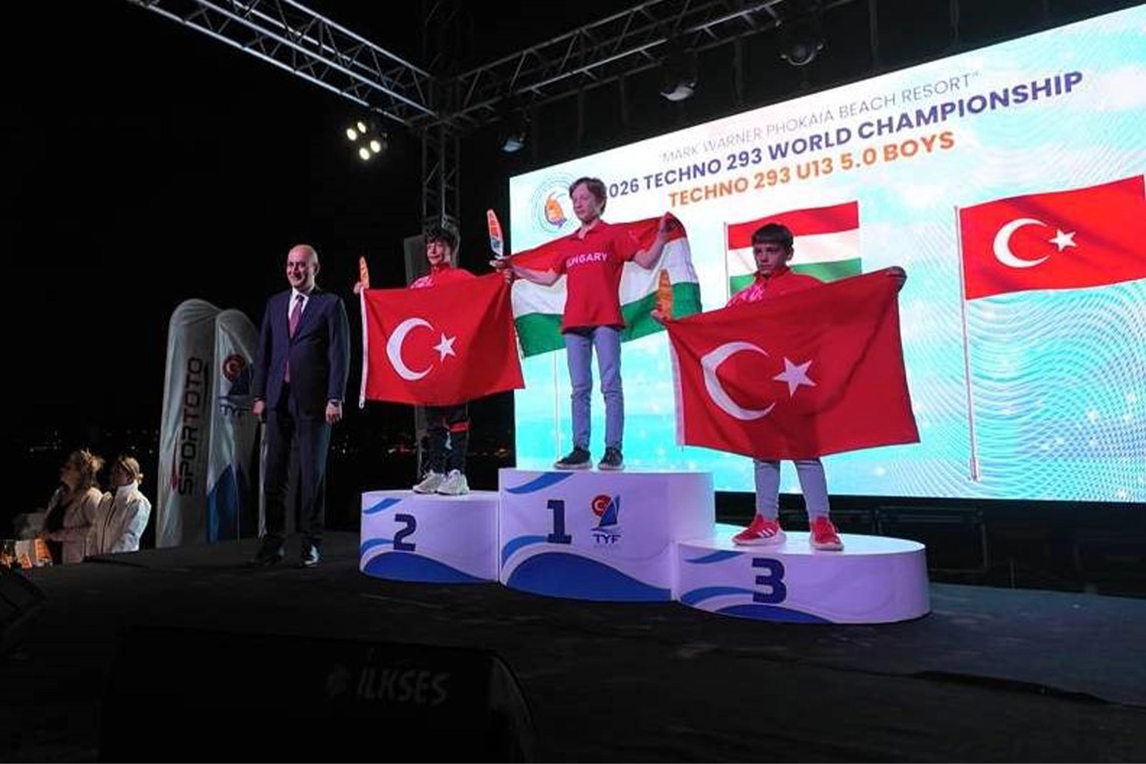 İzmir Valiliği ve Büyükşehir Belediyesi'nin himayesinde, Foça Belediyesi'nin desteği, Türkiye Yelken Federasyonu, Yenifoça Rüzgar Sörfü ve Yelken Spor Kulübü, Ege Turistik İşletmeler ve Konaklamalar Birliği (ETİK) iş birliğiyle, Mark Warner Phokaia Beach Resort ana sponsorluğunda, Aliağa Deniz Ticaret Odası (İMEAK DTO) ve Menemen Ticaret Odası (MENTO) başta olmak üzere çevre ilçe kurum ve kuruluşları ile sponsor kişi ve firmaların katkılarıyla düzenlenen Dünya Şampiyonası'nda şampiyon olan ve dereceye giren sporculara ödülleri Yenifoça Rüzgar Sörfü ve Yelken Spor Kulübü Tesisleri'nde yapılan törenle verildi.